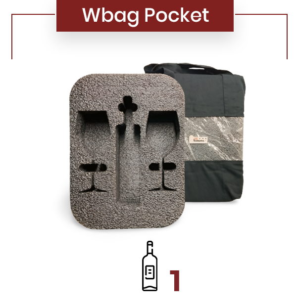 Wbag Pocket é um dispositivo de segurança feito em espuma de polietileno especial para transporte com segurança dos seus melhores vinhos e bebidas.
